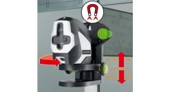 Avec molette de réglage pour un réglage exact de la hauteur, avec porte-pince pour suspendre des éléments de construction.